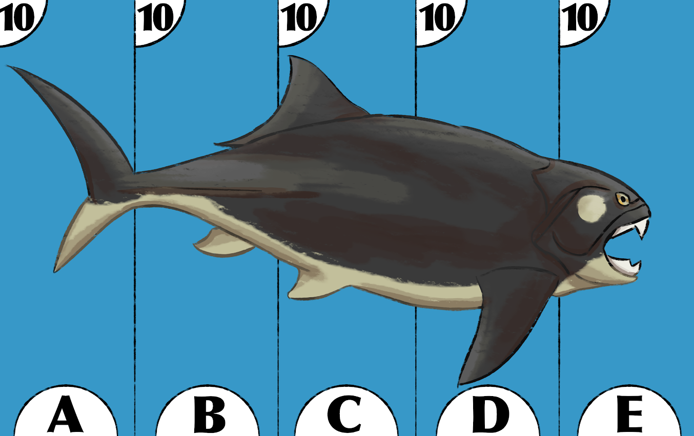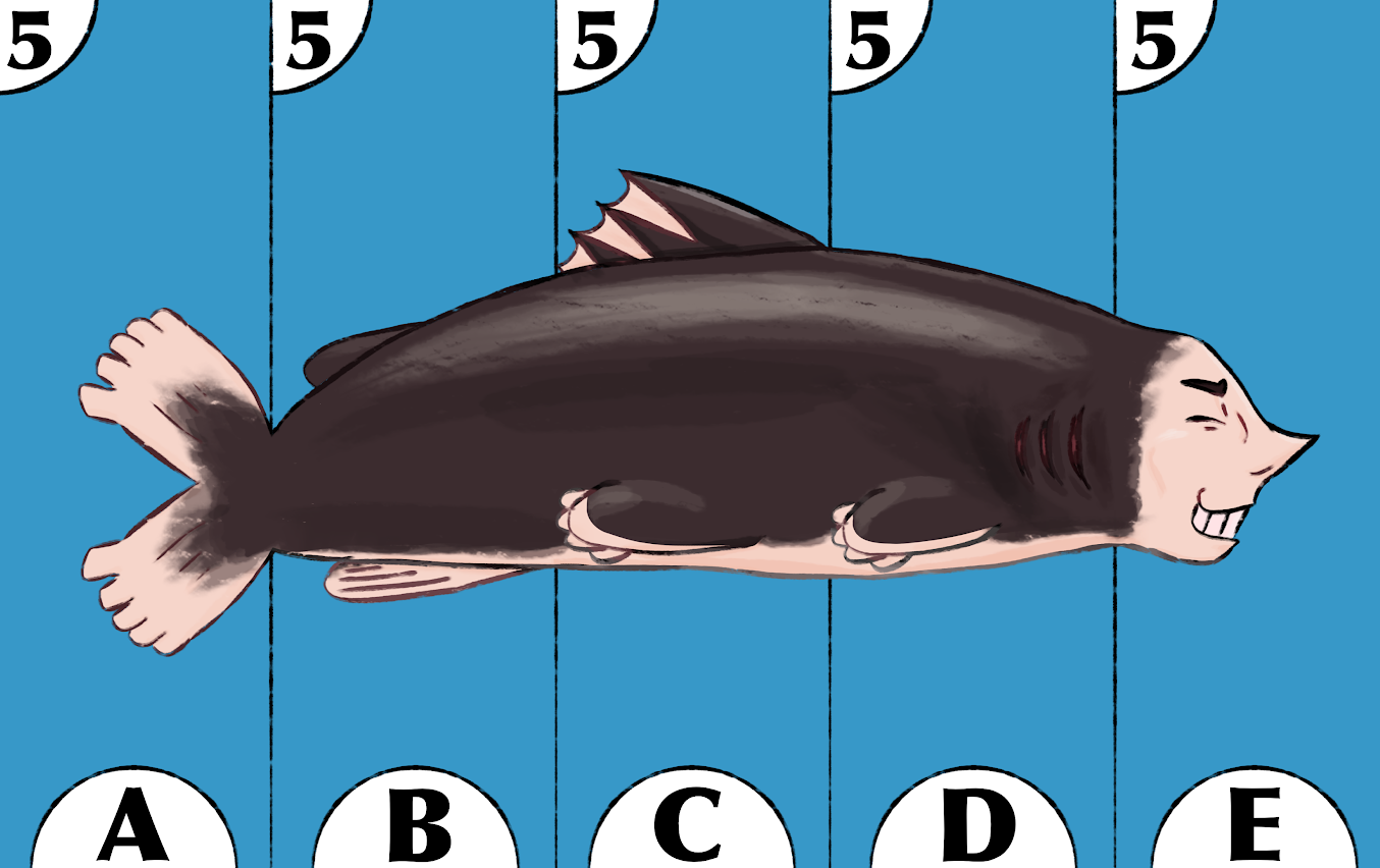 The card art below was half of the card art for a project in Game Design 1 where we had to create a party game. Our game was called "Darwin" and was based on evolving these fish and fighting enemies and bosses, the numbers on the cards being their strength. The lines on the cards would be cut, so there would be 5 strips of each fish, and they would then be "Frankensteined" together.